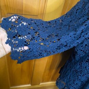 Elegant navy blue crochet top with intricate floral patterns. Perfect for layering.