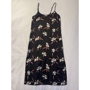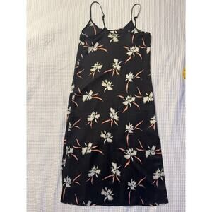J. Crew Black Floral Tank Dress Side Slit Adjustable Straps Midi Whimsy Goth