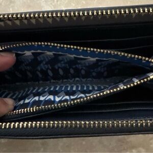Vera Bradley Navy Leather Clutch Zip closure 3 compartments- Pre-loved Excellent