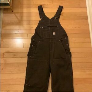 Durable Carhartt overalls with adjustable straps. Front pocket with logo patch. These are lined for warmth for winter- not lightweight