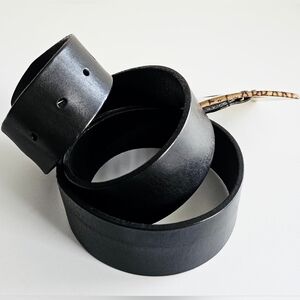 Authentic pre-owned Dolce&Gabbana belt in solid black leather and large gold square lettered buckle. A couple of dry spots otherwise in excellent condition.