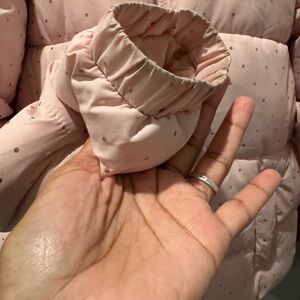 Stylish and warm puffer jacket. Light pink with subtle pattern. Ideal for cold weather.