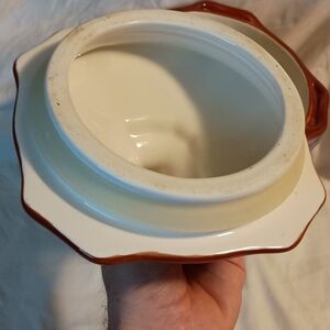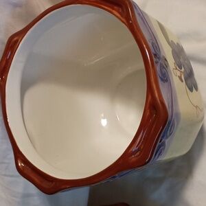 In good condition, no chips, canister with lid that has the rubber seal. This is 6 1/4" x 9". Very good integrity to this piece.