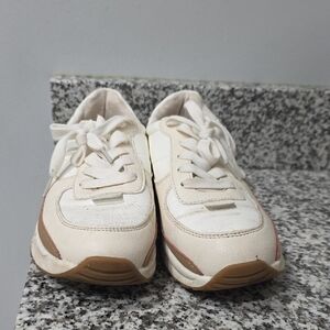 Cushionaire Women's White and Tan Sneakers