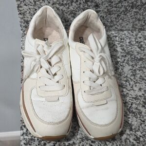 Cushionaire Womens white & tan sneakers