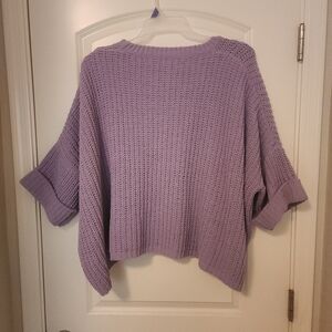 POL Oversized Chunky Knit Sweater in Lavender, short sleeves, cuffed