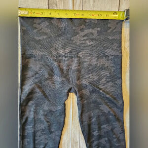 SPANX Women's •Size Large• Seamless Compression Camoflauge Black Gray Leggings. Please see measurements in photos provided. In good Pre-owned condition. Cross posted. I ship out same or next day. Thanks for looking!