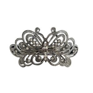 Silver Rhinestone Butterfly Hair Barrette