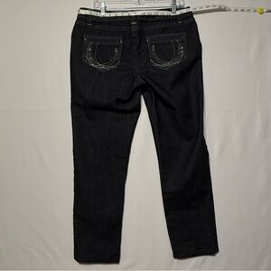 Chic Designer Baccini black wash denim jeans with stylish rhinestone studded back pockets. Perfect for versatile wear.