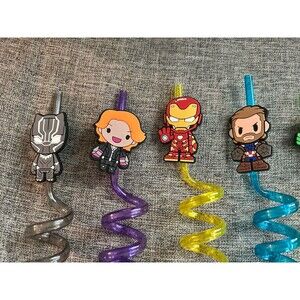 Avengers 7 Pack Reusable Straws Black Panther Black Widow Iron Man Etc.