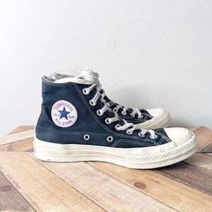 Converse x Comme des Garçons PLAY collab high top sneakers. In good condition with some wear as shown. Men’s size 7, women’s size 9
