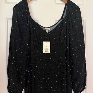 a new day Black and White Polka Dot Long Sleeve Dress