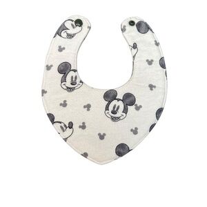 Adorable handmade newborn bandana bib with snap closure. Keep your little one stylish and clean with this Disney Mickey Mouse bandana bib. Featuring a charming gray design, it's perfect for any occasion.