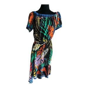 Flying Tomato Off-the-Shoulder Ruffle High-Low Tropical Print Dress – Size M