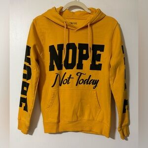 Bright yellow hoodie featuring bold black lettering. Perfect for casual outings.