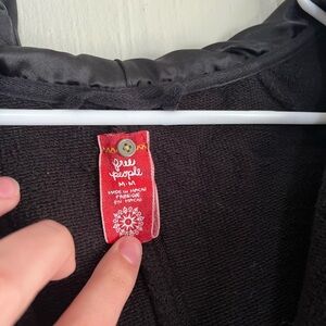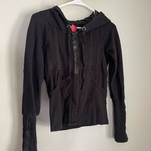 Cozy charcoal hooded sweater. Features a soft texture and button detail.