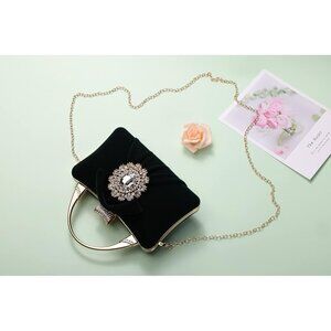 FEATURES: Elegant velvet clutch purse with crystal flower, well matching all kinds of party dress