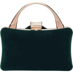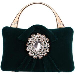 ⚡Women's Velvet Green Crystal Flower Closure Rhinestone Embellished Clutch Bag
