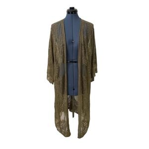 Sonoma Green Embroidered Mesh Lace Sheer Kimono Duster Cover Up Boho Fairy 3XL-4