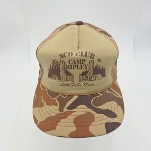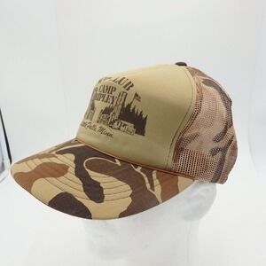 Vintage Trucker Camo Cap Hat Tan Mesh Back Snapback Hunting Camp Ripley That Hat