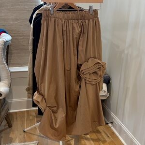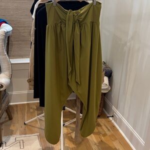 Adidas sneakers in olive green with tan accents. Features signature stripes.