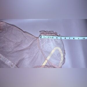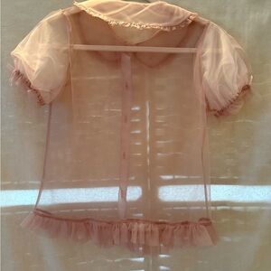 Adorable pink mesh top with ruffled details. Perfect for any occasion.