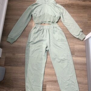 Cute and cozy mint green set with matching crop top hoodie and sweatpants