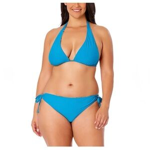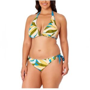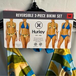 Stylish blue bikini top. Multicolor leaf-patterned bottom. Hurley Women's Reversible 2-Piece Bikini