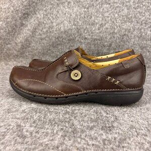 ✅Clarks Un-Structured Brown Leather Loafers Womens 10N Casual Comfort Shoes