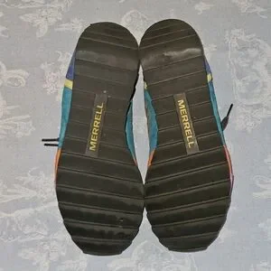 Merrell Women's Alpine Sneakers Brindle Multi Color U.S. Size 8.5 Hiking with after market insoles, pictured. In good pre-owned condition and very comfortable. Cleaned and sanitized and ready for wear.