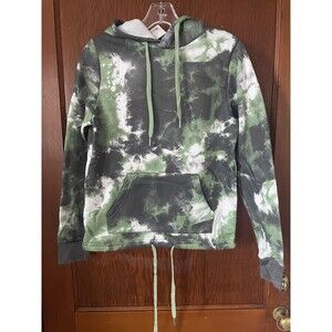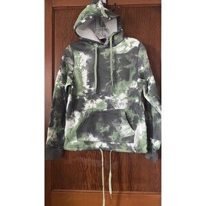 Mens Green Black White Tie Dye Sweatshirt Hoodie Drawstring Pocket S NWT