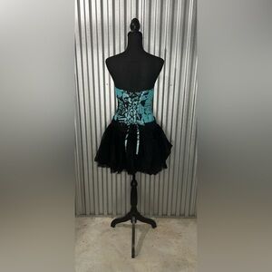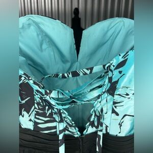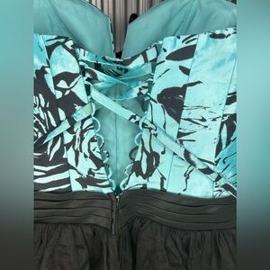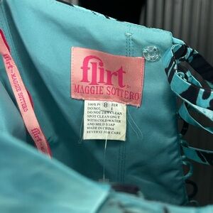 Women’s Flirt Maggie Sottero Blue Black Geometric Strapless Mini Dress Size 8