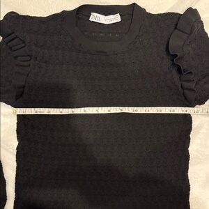 Zara Elegant Black Textured Long Sleeve Top