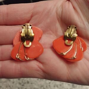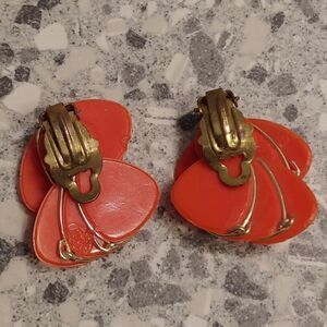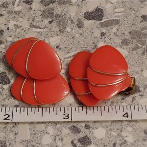 2/$20 VTG Bright Orange Clip Earrings Gold Trim