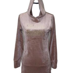 $69 CALVIN KLEIN VELOUR HOODED DRESS GOLD STUDS PULLOVER WOMENS