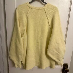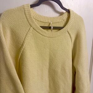 This cozy oversized sweater was purchased from Free People. The color of the sweater is a muted bright yellow color. The sweater is a size Medium.