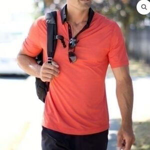 Lululemon Men's Precision Polo Shirt Orange with Black Collar