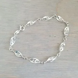 Sterling Silver twist style bracelet with cut out design. Please refer to photos for details and measurements. Markings that are hard to discern without a jewelery magnification. Markings are .925 MEX, MC-235. NWOT
