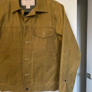 Embrace the outdoors with this Filson olive field jacket. Durable and stylish for any adventure.