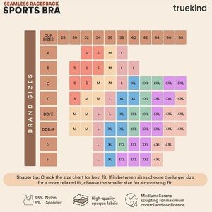 Our Truekind Seamless Racerback Sports Bra is perfect for all your daily activities, providing support and comfort while keeping you stylish and confident. With just the right amount of stretch and smoothing, this bra is designed to give you the necessary support and confidence for every day. Made from a lightweight and breathable blend of nylon and spandex, this medium-to-light impact bra delivers maximum comfort and freedom of movement. The Truekind Seamless Racerback Sports Bra features a wide waistband and racerback straps that keep everything in place, providing the best performance and style.
