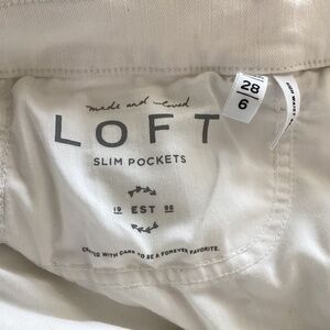 These women’s Loft waist-flattering, high rise, size 6, come in a perfectly stretchy denim. The button fly makes them extra playful.