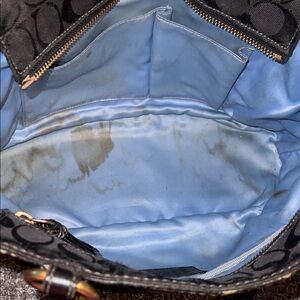 Stylish black tote with signature Coach pattern. Features elegant gold hardware. Perfect for everyday use.