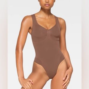 Your shortcut to a toned tummy. Designed with sculpting core compression, this high-waisted solution shrinks your waist up to two inches while our signature SKIMS Body fabric shapes your thighs and butt. Features an open gusset, interior bonded elastic along the waist, and raw cut leg openings for a seamless look under clothing. Hits at the mid-thigh.