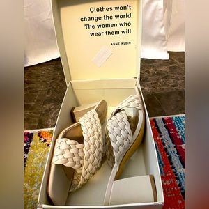 Anne Klein Misty Crossover Women’s Heeled Sandal Cream Sz 11