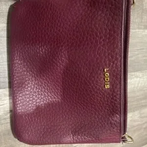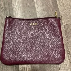 LODIS designer red burgundy wine pebbled leather designer pouch Lagenlook Classy
