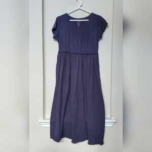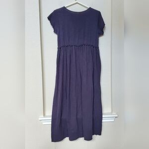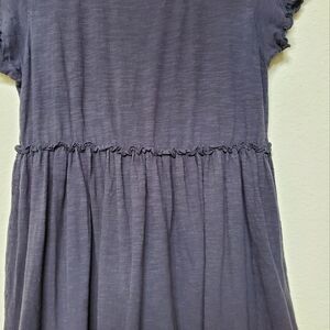 ladies 100% cotton dress with mid gathering and small ruffle sleeves. Color is dark gray and in excellent condition
