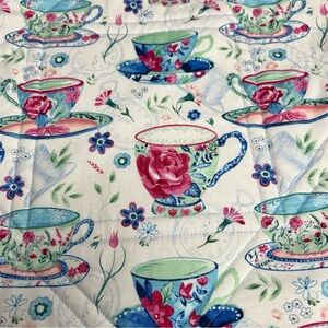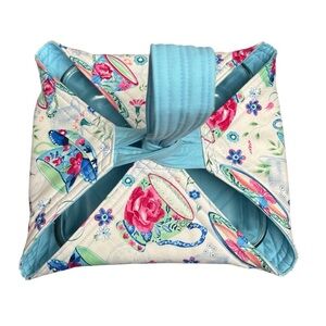 Insulated reversible casserole/pie carrier keeps hot foods hot and cold food cold. It has a carrying handle for easy transportation. Impress your friends and family with the perfect carrier to bring your favorite recipes to all your gatherings in style. Wonderful hand made gift for someone or for yourself! Floral tea cups blue