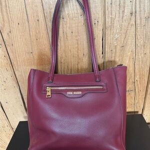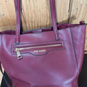 Steve Madden Large Faux Pebbled Leather Tote Crossbody Bag EUC Burgundy/Brown