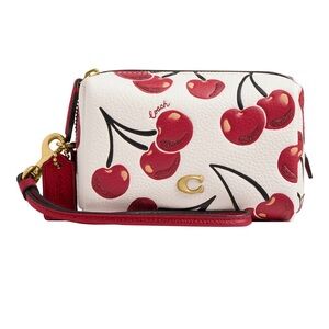 Canvas and smooth leather Two credit card slots Snap closure fabric lining Handles with 3 1/4 drop Detachable strap with 25 drop for shoulder or crossbody wear 7 3/4 (L) x 6 3/4 (H) x 3 1/2 (W) Style No. CBK29