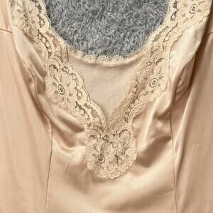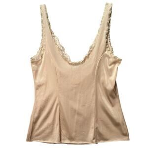 VTG Vassarette Lace Edge V-Neck Paneled Fitted Nylon Camisole Beige Women 12/14